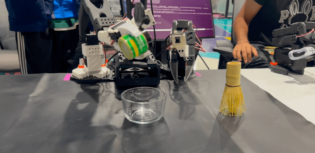 They’ve built bimanual robot arms powered by the XLeRobot system, trained an NVIDIA GR00T N1.5 model via NVIDIA Brev, and deployed inference on Jetson Thor. The robot’s task is to pour out the matcha powder, add water to the bowl, and then mix together to make matcha tea.