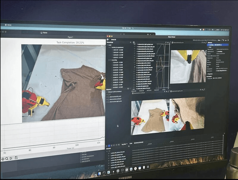 This project aimed to leverage dual-robot arms by fine-tuning Vision-Language-Action (VLA) models specifically for the complex task of folding a T-shirt. We wanted to explore how quickly a compelling behavior could be developed and deployed.