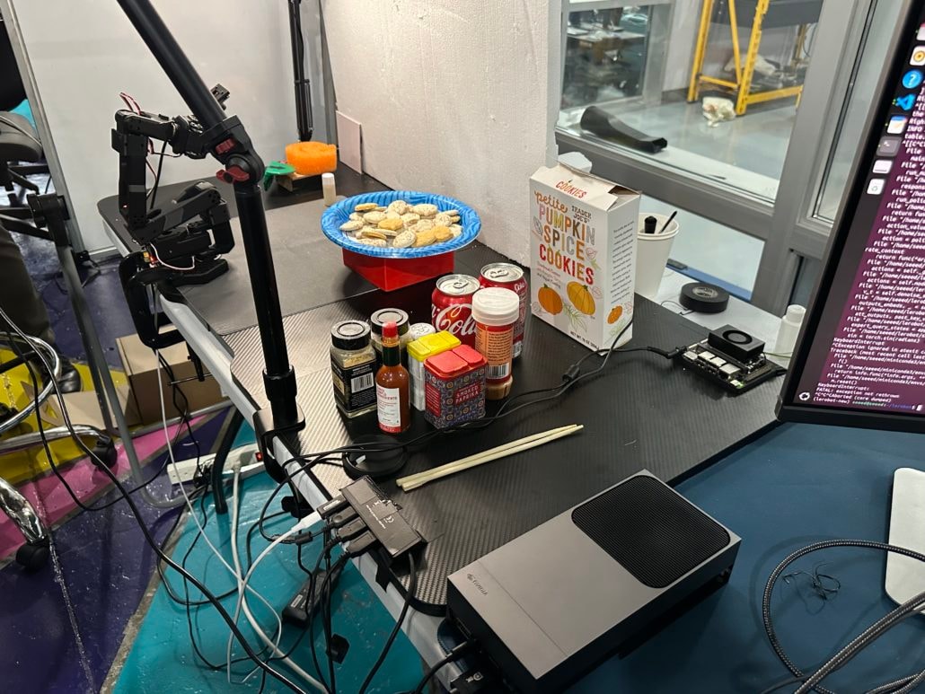 Their system was powered by a fine-tuned SmolVLA trained on 170 episodes and deployed on NVIDIA Jetson Thor, with successful migration even on the smaller Jetson Orin Nano. A notable design choice was breaking the long-horizon task into 4 focused models — grab, tilt, press, and place. By running each model with its own activation timing and sequence, the team gained more reliable control over each sub-action. This modular approach made the overall behavior smoother and easier to coordinate across the entire task.