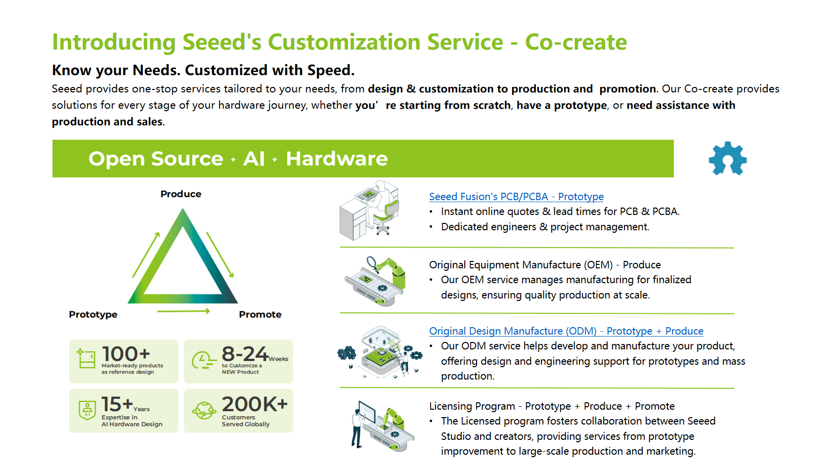 Our partnership with Everything Smart Home evolved from traditional manufacturing service to Co-create. We now sell Everything Presence Lite on Seeed Bazaar, leveraging our platform to expand its reach to a global audience. Beyond just production, we handle the entire sales cycle—including order fulfillment, shipping, and after-sales support—while sharing net profits with our partner.
