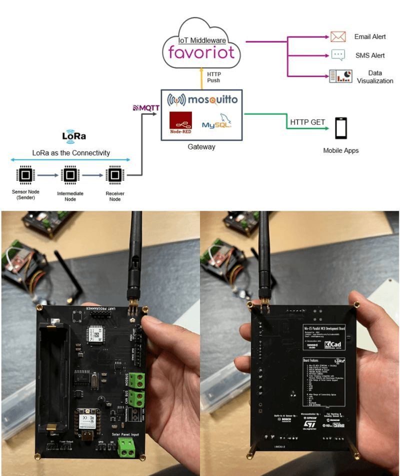 To improve the situation of high dependence on power and the narrow transmission range of LoRa® in the urban area, Aiman Akid deployed an optimization project for LoRa® point-to-point network. The purpose of the project is to build two optimization strategies and then assess the node’s operation. The first is the RTOS approach, which is Deep Sleep, to minimize the power consumption of the LoRa® sensor node. And the other is adding another LoRa® node as an intermediary node to extend the network transmission distance. To view the original project on hackster.io, please refer here.