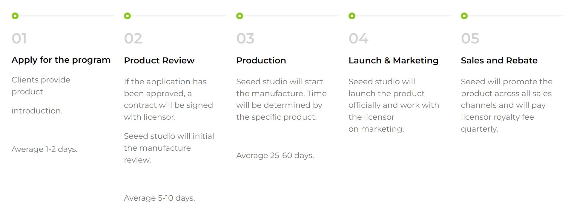All licensed projects, whether hardware, software, tutorial or complete product will feature on the Seeed Studio store (Bazaar) individually or with Seeed Studio’s products for sale and you will get a share of the profits. We are looking for unique projects that strongly identify with Seeed Studio’s audience, solve real-life problems, fill a niche and/or spur inspiration and creativity!