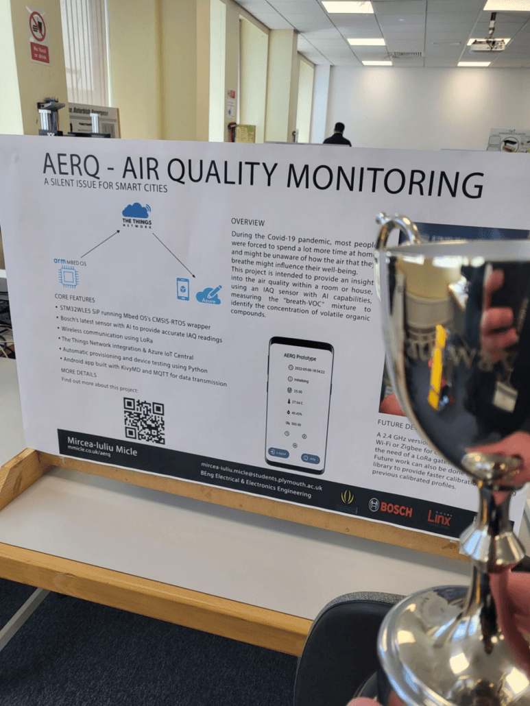 Updates!! This is HUGE! Big congrats to Mircea-Iuliu Micle on winning the BEng Pathway Award at University of Plymouth with his amazing project “AERQ-Indoor Air Quality Monitor”. We’re super happy to have the chance to support his project based on Seeed Wio-E5 module and Fusion PCB Assembly service!
