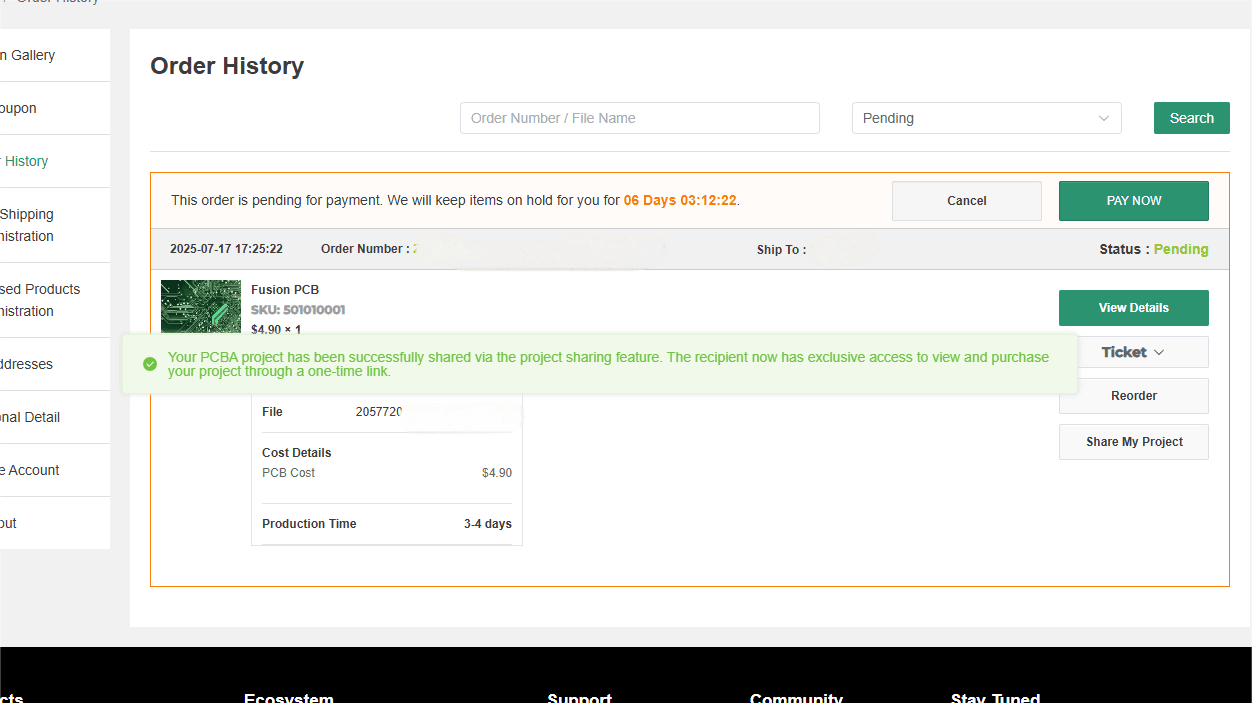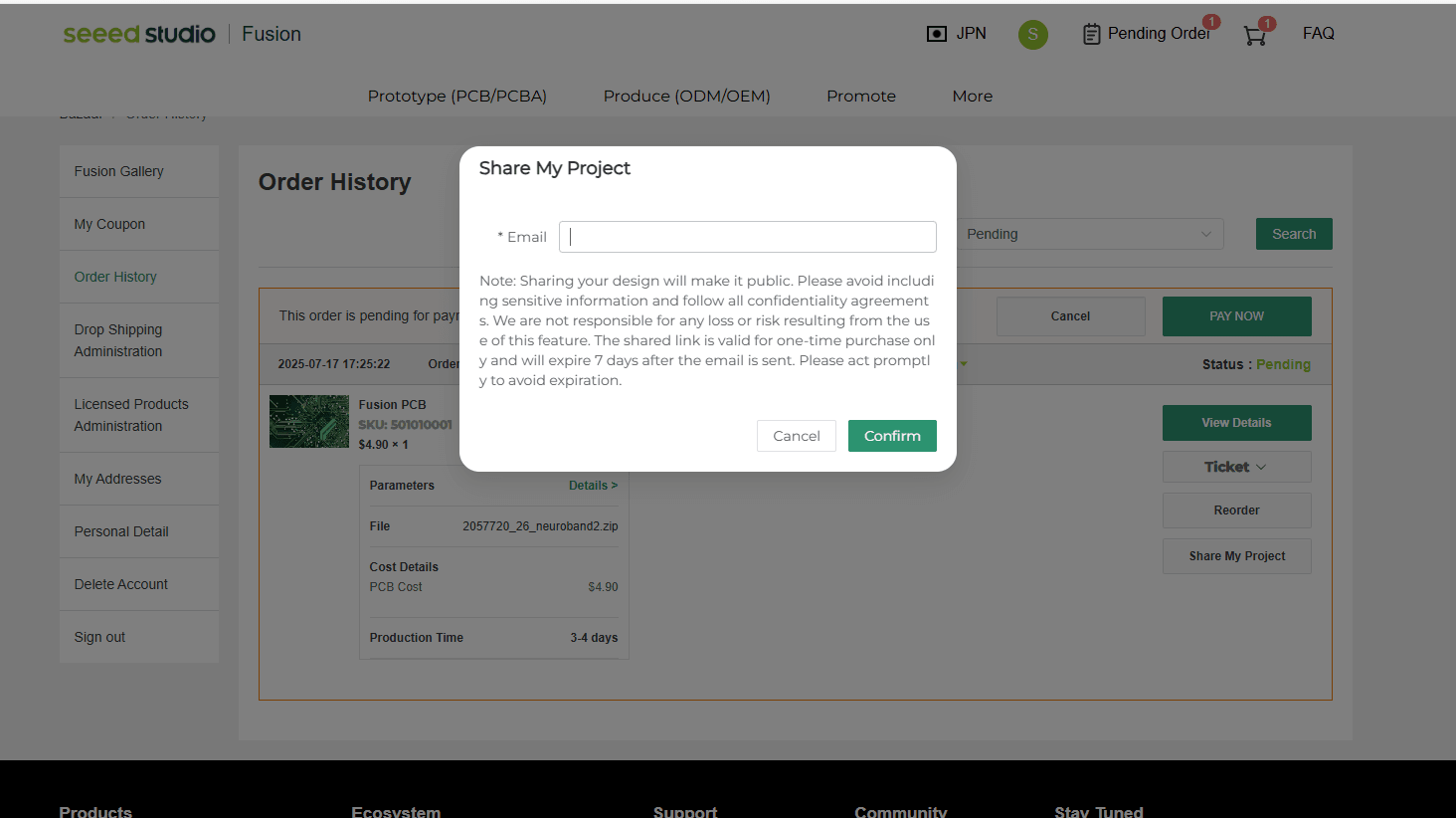 That’s why we built Order Sharing via Email — to let anyone easily replicate and order the same PCBA project, without re-uploading files or choosing complex parameters.