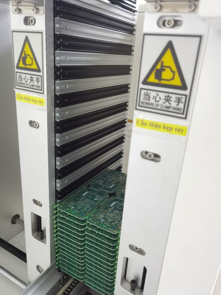 The first step in SMT manufacturing is to prepare the PCB. A PCB loader is used at the start of the production line for loading PCB to the line, which is to provide a fixed position for the next phase of the process.