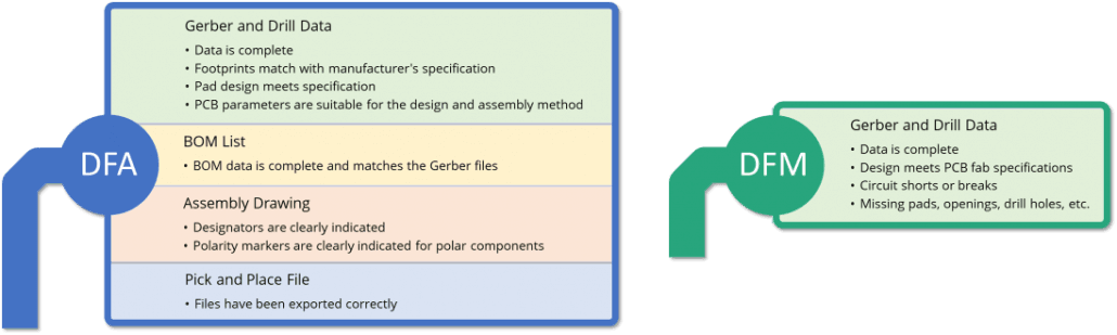 Strictly speaking, Design for Manufacture pertains to the stages that go into making the parts of a device – for electronic assembly, that would mean the individual components and the PCB. Therefore, it makes sense that Design for Assembly, pertains to the stage where all these parts are put together, i.e., populating the PCB. But in some circles, the assembly of a complete product, like a box-build with screws, casing and packaging is more like assembly. There is even DFMA term floating around to refer to both manufacture and assembly due to significant overlap. Such nuances can cause a bit of confusion when it comes to definitions and names.