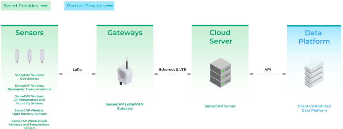 To address those challenges, Mr. Deng was willing to embed the idea of smart farming technology into his tea plantations, enabled by our SenseCAP LoRaWAN series of IIoT products (Figure 3). The series’ LoRaWAN version is based on LoRaWAN protocol, and its multiple ISM bands makes it possible to be deployed all over the world with ease. Since SenseCAP is encapsulated in an IP66 enclosure, it is applicable for all kinds of outdoor remote sensing scenarios that need low-power, long-distance and long-term data collection features, like Smart Farming in this case.