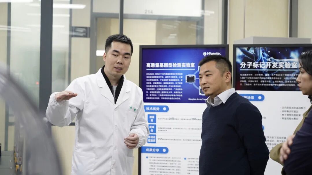 潘昊一行先后参观了岳麓山种业创新中心展厅、华智生物国家级分子育种创新服务平台实验室,详细了解了华智生物BT+DT(生物技术+数据技术)的技术能力和产业应用,特别是智能大数据中心在智慧育种、数字农业的经典案例。