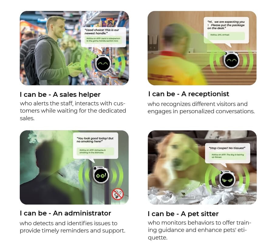 It can be placed on a desktop or mounted on walls as a smart expansion. Or it can also be transformed into the head of a robot.