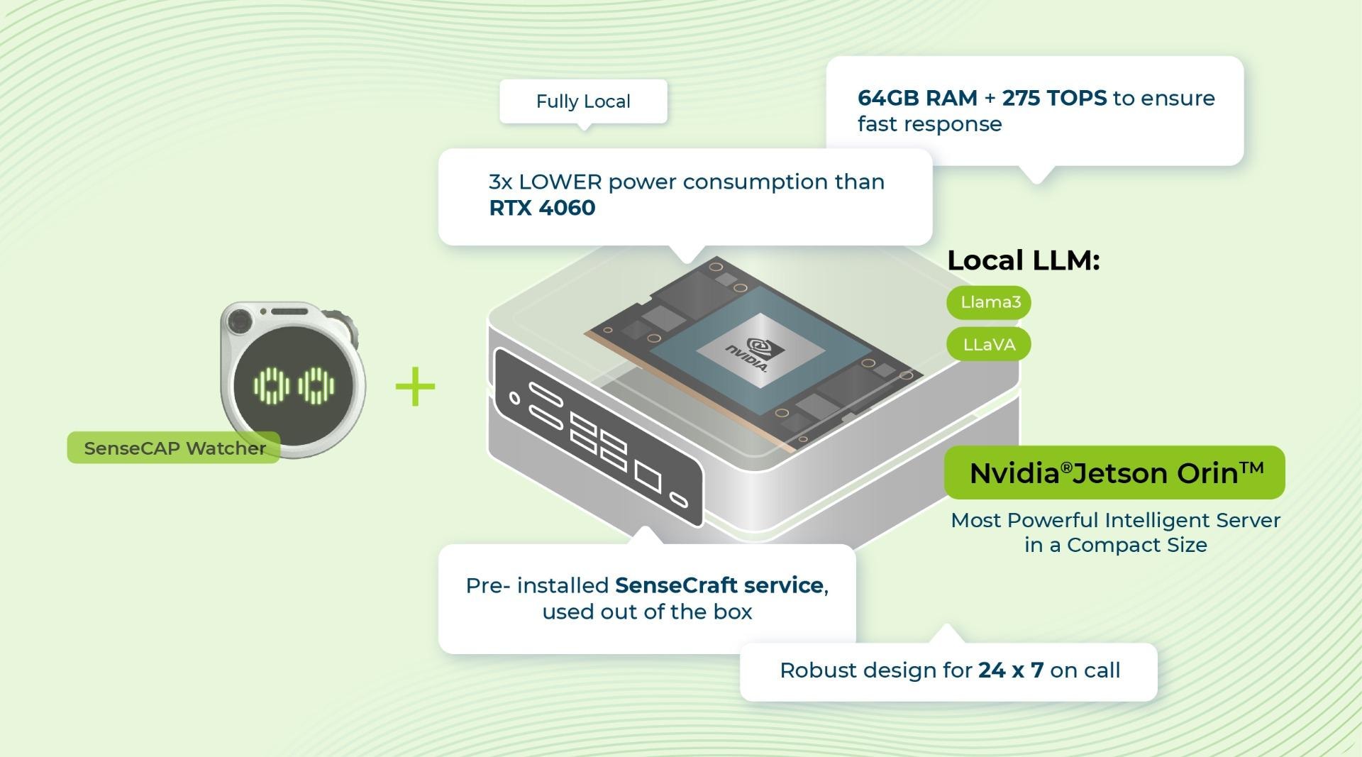 You can deploy SenseCraft on your spare computers. However, if you aim for applications requiring commercial-grade reliability and low-power consumption, the combination of SenseCAP Watchter + NVIDIA® Jetson AGX Orin™ is perfect for you!
