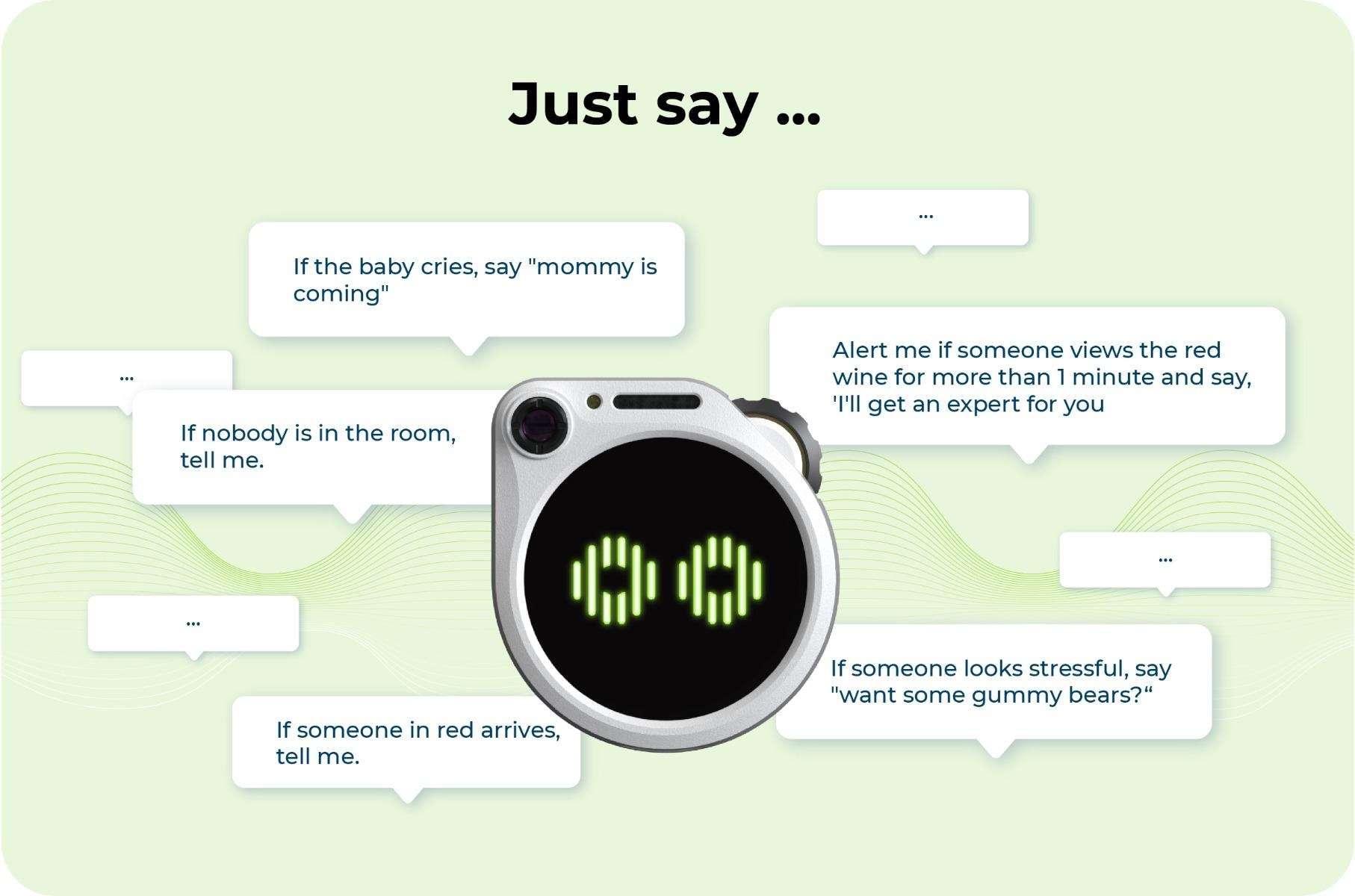 Putting Watcher in different scenarios allows for versatile responses. When seeing a dog tearing up tissues, say "Stop, Cooper!", when seeing a person smoking in non-smoking areas, say "No smoking!"